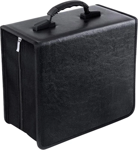 Black Leather CD Case, 400 Capacity CD/DVD Storage Organizer, Portable & Durable