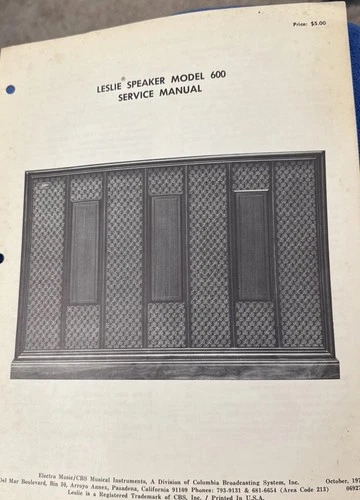 OEM Leslie Speaker 600 Service Repair Shop Manual Schematics M1