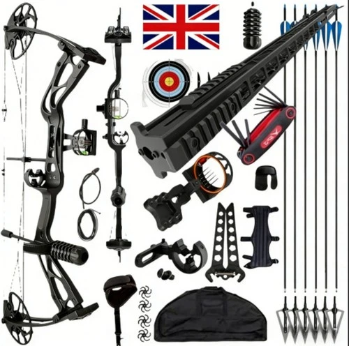0-70lbs Compound Bow Set 320FPS Sight Carbon Arrows Feathers Shoting Archery