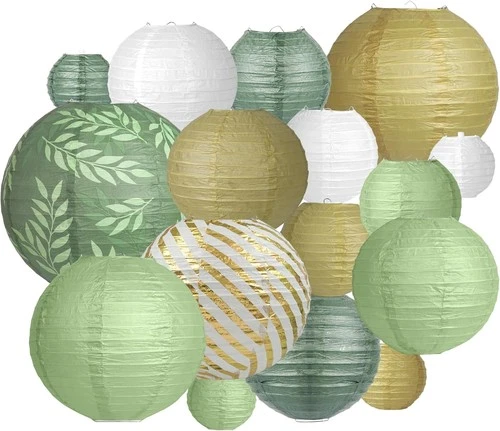 Party Decorations Paper Lanterns Set, 16PCS Sage Green White and Gold Chinese J