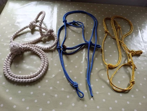 TRADITIONAL COTTON ROPE HEAD COLLAR/LEAD REIN PLUS 2 PARELLI STYLE ROPE HALTERS