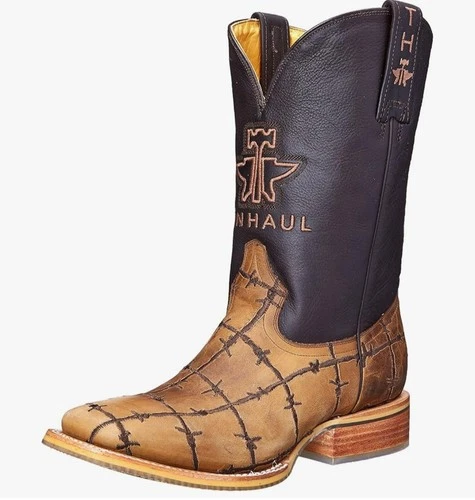 Tin Haul Western Boots Barbed Wire 'What's Your Beef Man?' Sole size 13 wide nib