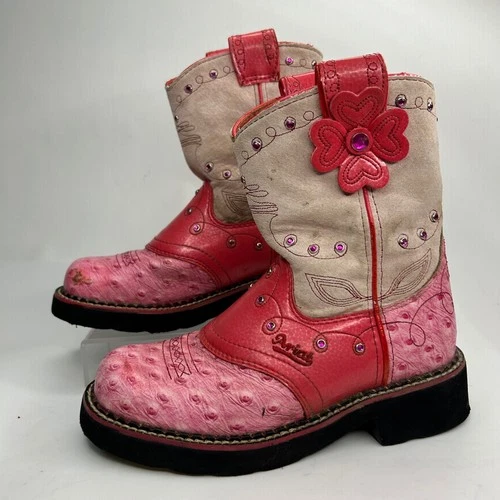 Ariat Fatbaby Pink Ostrich Print Rhinestone Western Boots Kids Size 2 cowgirl