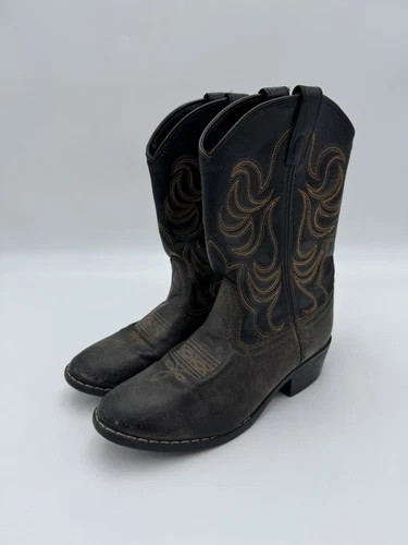 Smoky Mountain Cowboy Boots Size 4r Style 1575Y Dark Brown Lower And Black Upper