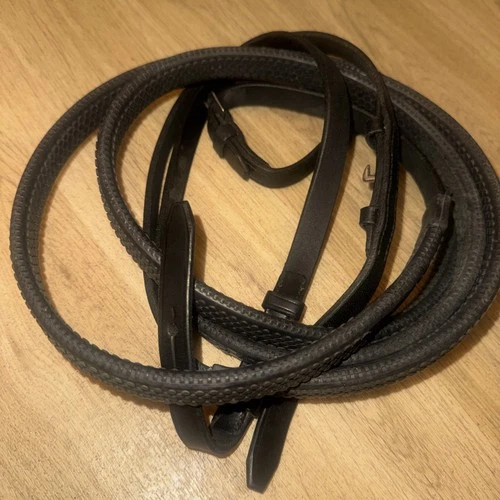 Black English Leather Full Size Rubber Reins 54” | Second Hand Horse Tack #54