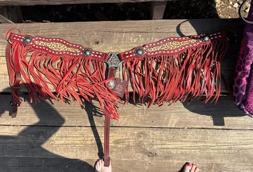 Lucky Leather Custom Breastcollar Red Cheetah Barrelracing Fringe
