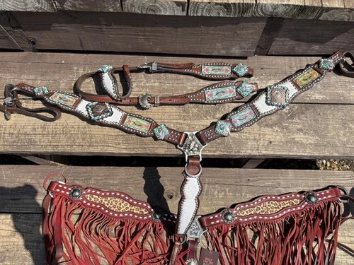 Chrome Girl Custom Breastcollar White Inlay Barrelracing Custom Conchos