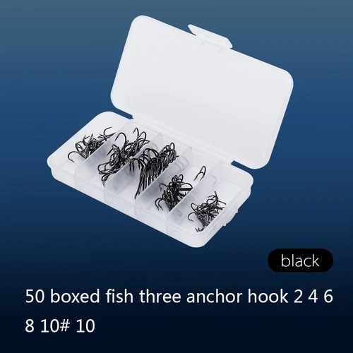 N- 50pcs/Box Fishing Hook Sharpened Treble Hook 5 Sizes 2/4/6/8/10 Fishhook