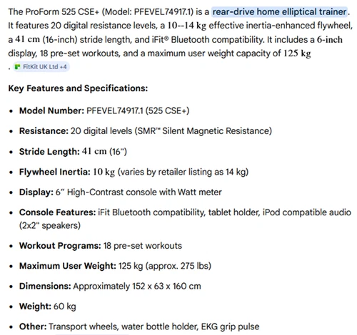 ProForm 525 CSE Plus Magnetic Resistance Elliptical Cross Trainer