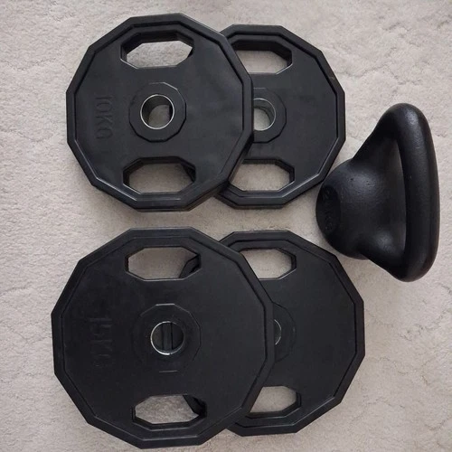 Men's Health Hex Rubber Coated Wght Plates 10Kg X 2, 15Kg X 2 & Kettlebell 24Kg