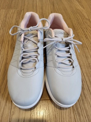 Womens Skechers GoGolf Goga Max Grey Pink Laced Studded Golf Shoes UK 6.5