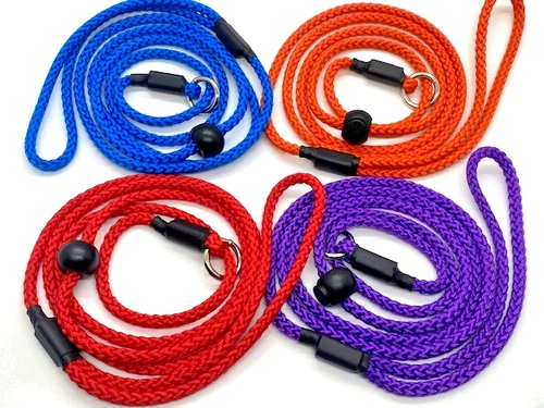 6 mm thin dog braided slip lead with ball slider stopper 145 cm Strong UK made.