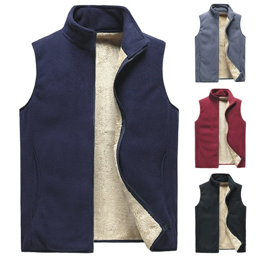 Men/Sherpa Lined Fleece Waistcoat Soft Gilet Full Zip Jacket Vest Top Coat Solid