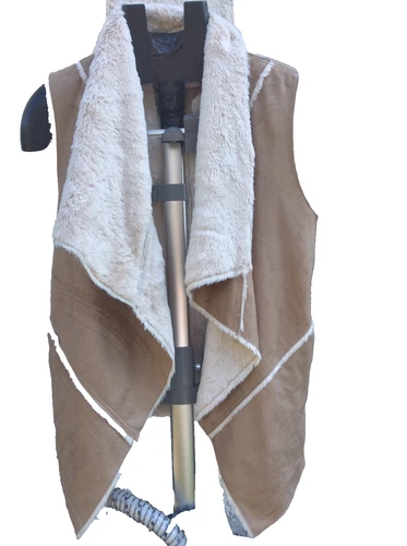 Bershka Waist Coat Gilet Women Faux Fur Small Size Beige Big Fluffy Collar Winte