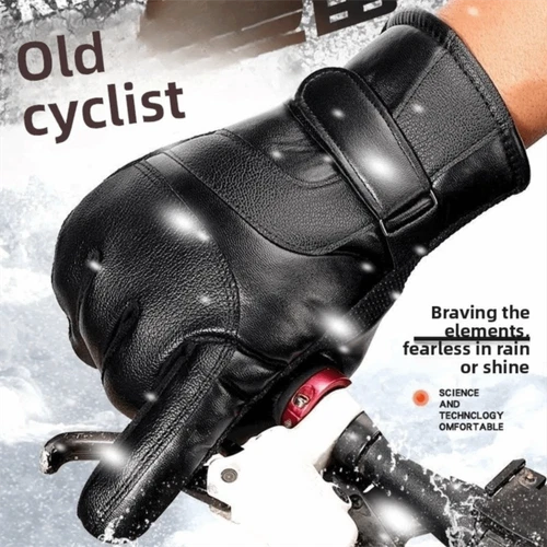 Keep Warm Winter Ski Gloves Black Driving Gloves Men Leather Mittens Ski