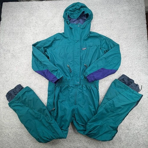 Vintage Patagonia Snow Ski Suit Women 10 Teal Purple One Piece Hooded Zip Pocket