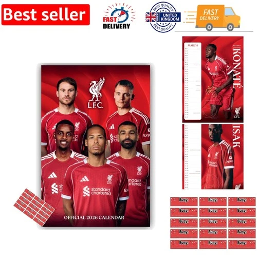 Liverpool FC 2026 A3 Wall Calendar with Exclusive Player Photos & Stickers
