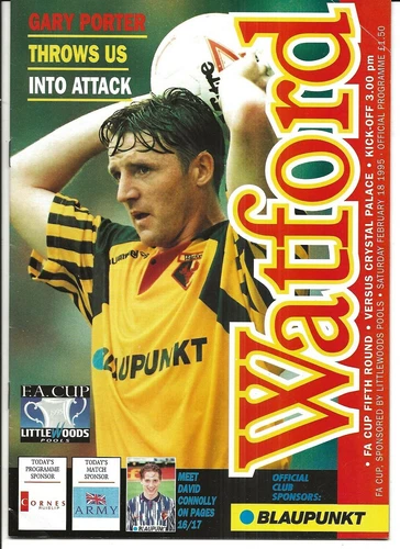 Football Programme>WATFORD v CRYSTAL PALACE Feb 1995 FAC