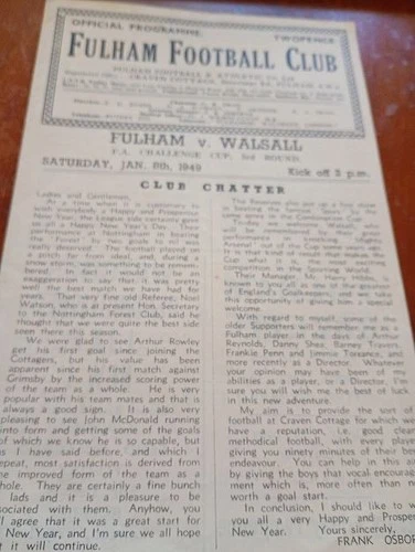 Fulham V Walsall 1949 F.A Cup Programme - Immaculate Condition