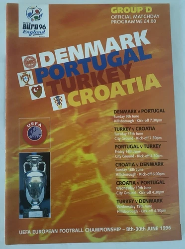 Euro 96 Official Matchday Programme Group D Denmark Portugal Turkey & Croatia
