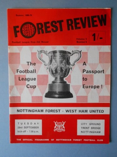 Nottingham Forest West Ham League Cup 3rd Rd September 1969 Mint Condition