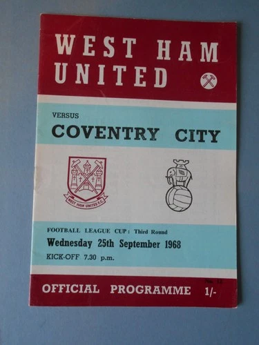 West Ham Coventry City League Cup 3rd Rd September 1968 Mint Condition