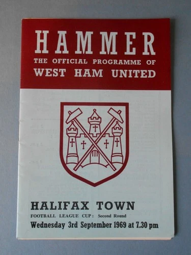 West Ham Halifax Town League Cup 2nd Rd 3rd September 1969 Mint Condition