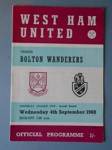 West Ham Bolton Wanderers League Cup 2nd Rd September 1968 Mint Condition