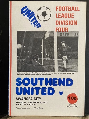 Southend United Vs Swansea City, 15th March 1977 Division 4, SUPERB CONDITION