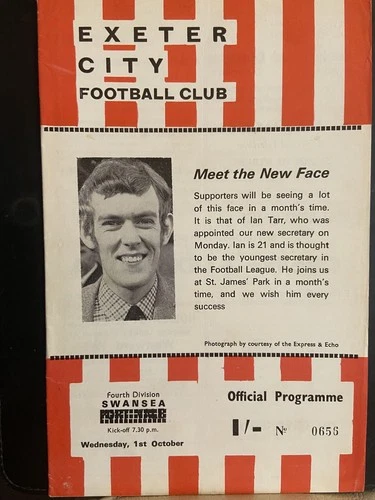 Exeter City V Swansea Town, 1st October 1969, Division 4 GOOD CONDITION