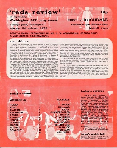 WORKINGTON v Rochdale 1976/1977 - Workington's last season in the League