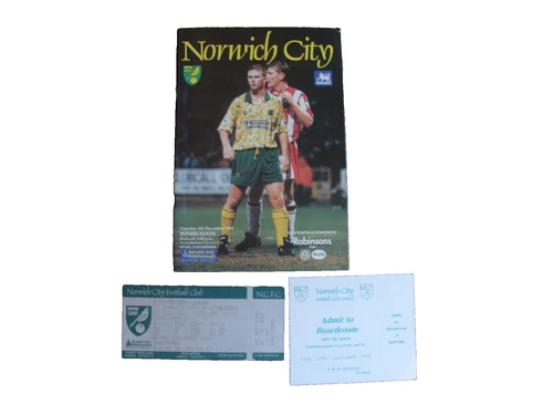 Norwich City vs Wimbledon 05/12/1992 Programme , Ticket stub and Boardroom pass