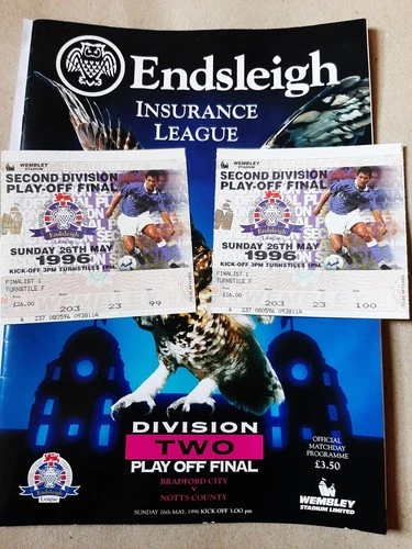 1996 Bradford City v Notts County Play-Off Final Programme + RARE TICKET SET