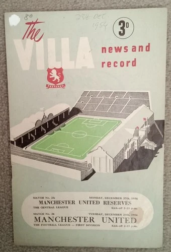Aston Villa v Manchester United - 1st division played on 28th December 1954