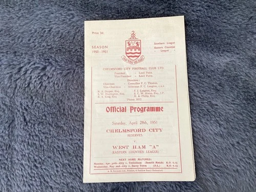 CHELMSFORD CITY V WEST HAM 'A' eastern counties league