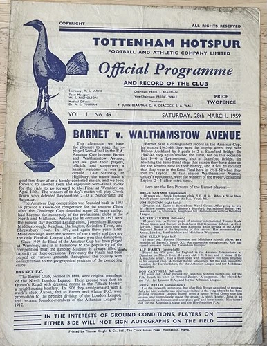 1959 FA Amateur Cup Semi-Final Replay BARNET v WALTHAMSTOW AVENUE @ TOTTENHAM
