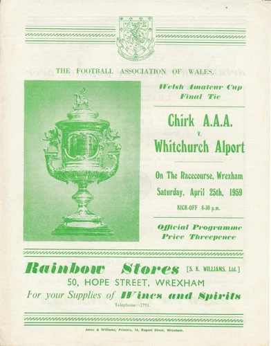 WELSH AMATEUR CUP FINAL 1959 Chirk v Whitchurch Alport @ Wrexham