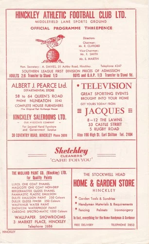 1965/66 Hinckley Athletic v Dunstable Town, Southern League - good condition