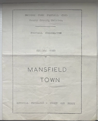 Swindon Town Reserves v Mansfield Town Reserves 31st October 1959