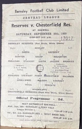 Barnsley v Chesterfield, Central League, 1959/60.