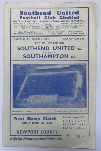 Southend United Reserves v Southampton Reserves 1st February 1958