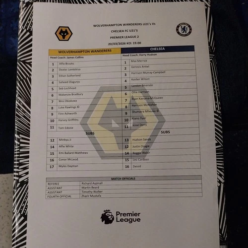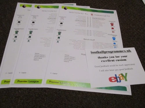 DERBY COUNTY U21's v MIDDLESBROUGH U21's 2025/26 MARCH 20th colour s/sheet
