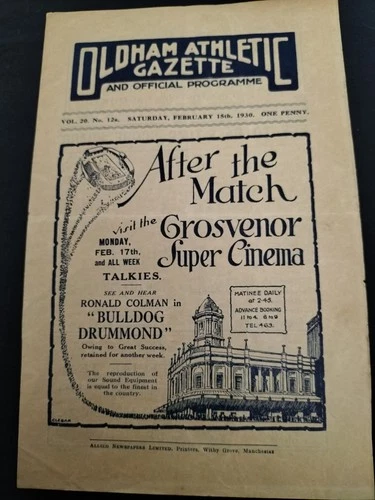 RARE PRE WAR PROGRAMME OLDHAM ATHLETIC V WEST BROMWICH ALBION RESERVES 1929/30