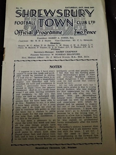 SHRESWBURY TOWN V HALIFAX TOWN RESERVES MIDLAND LEAGUE 22ND OCTOBER 1949