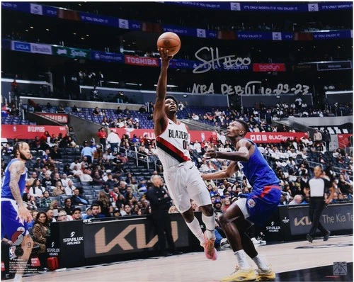 Scoot Henderson Trail Blazers Signed 16x20 Layup Vs. Clippers Photo w/Debut Insc