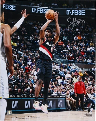 Scoot Henderson Portland Trail Blazers Signed 16" x 20" Shooting in Black Photo