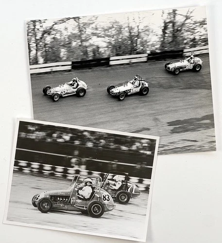 AJ Foyt racing Midget at Houston Astrodome 1970 + 1 other. Vintage photographs.