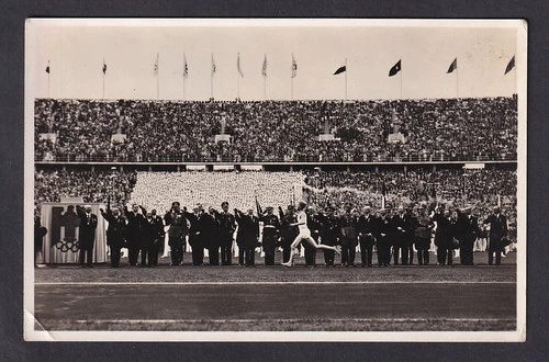 Olympics 1936 BERLIN Reichssportfeld Stadium torch bearer RPPC