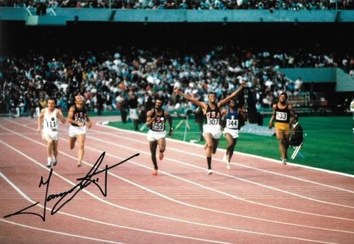 tommie smith arms out raised winning 200m final MEXICO CITY signed 12x8 photo