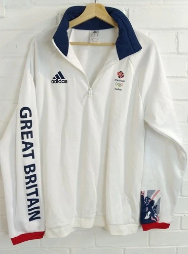 Olympics Rio 2016 Team GB White Half Zip Adidas Sweatshirt AZ0737 Size 44 46